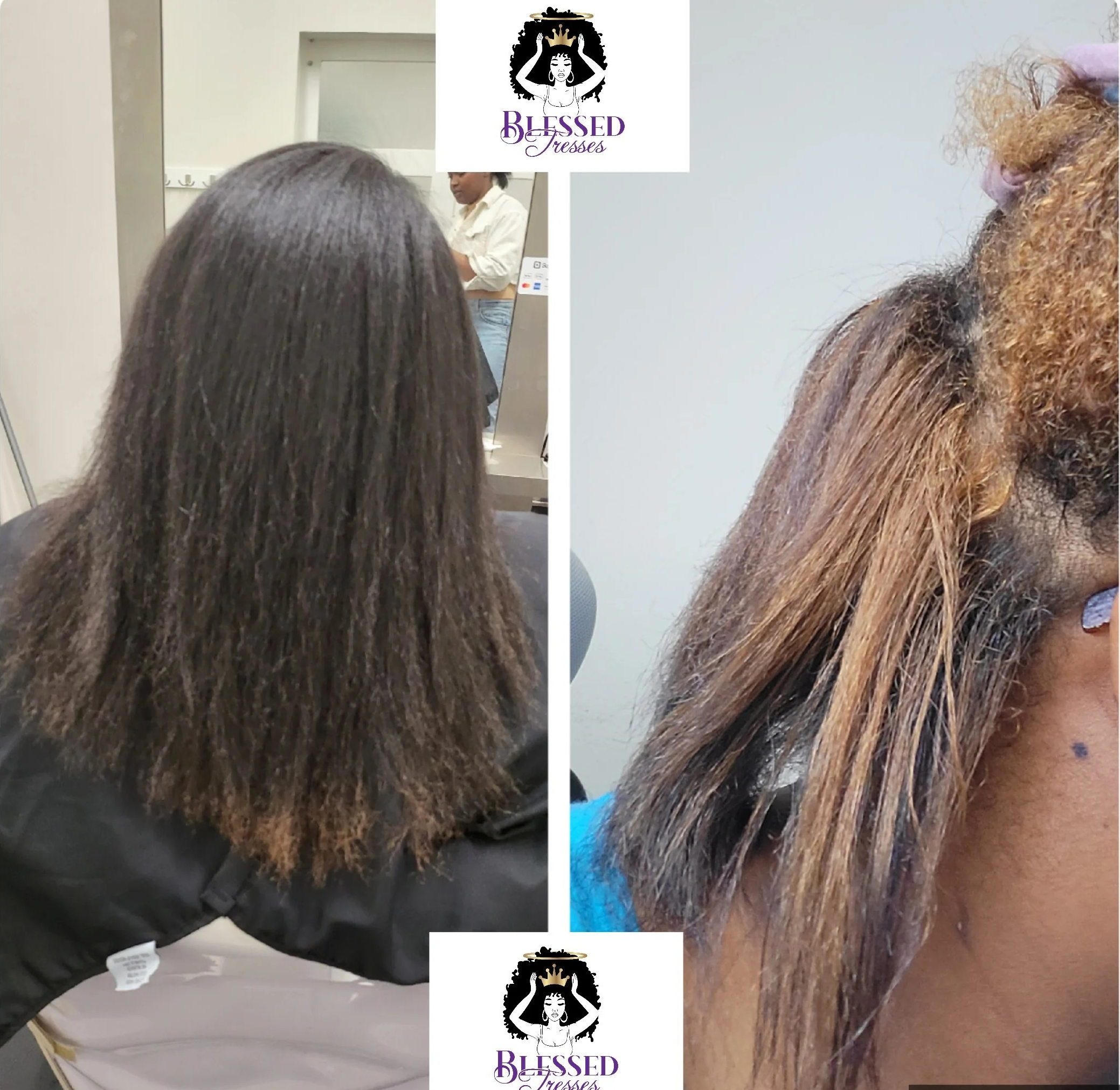 Now, the owner herself, always had a decent length of hair that was typically healthy. After 7 years of no maintenance & trims, chemical damage and no beneficial products applied to her hair, the ends started to split causing major breakage and stunted growth, with her hair never passing shoulder-length. She began to cry as the beauty she saw in herself, and her mother seemed to be diminishing. They tried many products and concoctions found online to no prevail.